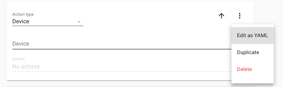 - Click Add Action, click the options menu (⋮) on the right side, and then click Edit as YAML.